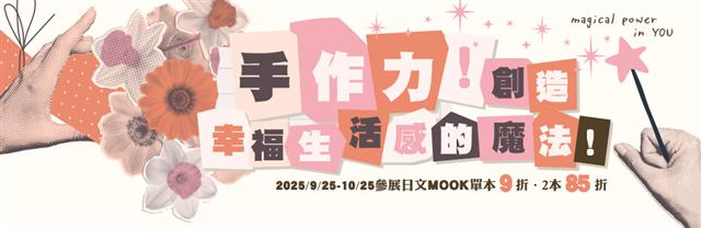 手作力!創造幸福生活感的魔法!9/25-10/25 參展日文MOOK單本9折.2本85折